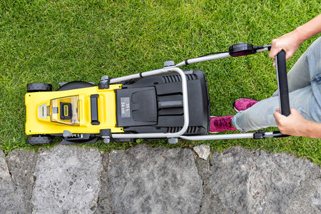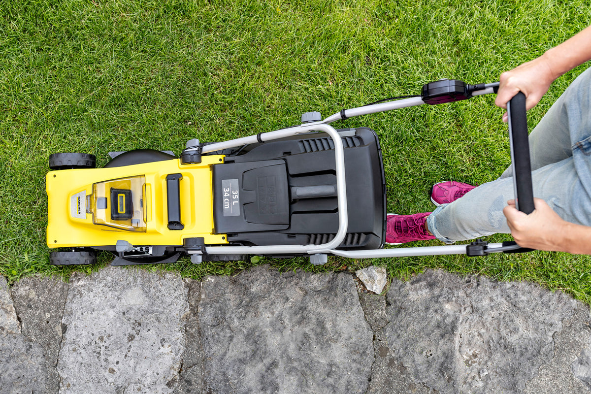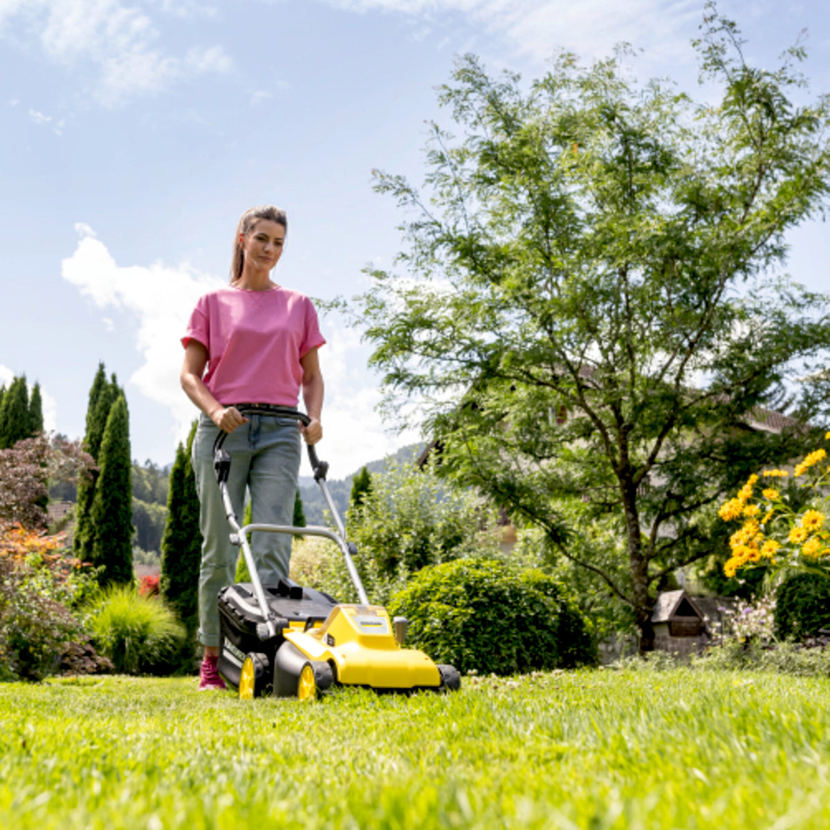 La tondeuse à batterie de 18 volts est légère et maniable et possède un puissant moteur sans balais. Les pelouses jusqu'à 350 mètres carrés de superficie sont tondues avec précision en un rien de temps. La largeur de travail est de 34 centimètres. Le réglage de la hauteur de coupe souhaitée s'effectue facilement et de manière centralisée sur 5 niveaux entre 25 et 60 millimètres. Pendant la tonte, la fonction iPower garantit, grâce à une commande intelligente du moteur, que le régime s'ajuste automatiquement à l'état de l'herbe. Lors de la tonte en bordure ou le long d'une arête, des guide-herbes redressent les brins d'herbe, ce qui permet de mieux les saisir. Avec le système de tonte 2 en 1, l'herbe coupée est répartie uniformément sur la pelouse comme engrais naturel pendant le paillage ou collectée dans le bac de ramassage d'une capacité de 35 litres – pour une session de tonte prolongée sans interruption. Le guidon est réglable en hauteur pour garantir une posture de travail agréable. Lorsque la tringlerie est pliée, le rangement est possible avec un encombrement minimal. Pour un transport facile dans les escaliers et sur les paliers, des poignées de transport ont été intégrées. Compatible avec toutes les batteries interchangeables de la plateforme de batterie Kärcher Battery Power 18 V.