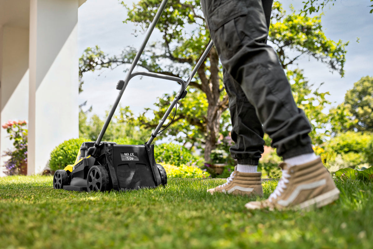 Performante et très mobile : alimentée par 2 batteries de 18 V et un moteur de 36 V sans balais, la LMO 4-18 Dual est la solution idéale pour les pelouses jusqu'à 450 m². Son faible poids rend cette tondeuse particulièrement maniable et mobile. Elle offre une bonne manœuvrabilité, même en terrain accidenté ou pour contourner des obstacles. La largeur de travail est de 37 cm et un réglage centralisé de la hauteur de coupe permet d'ajuster la hauteur de coupe sur 5 niveaux entre 25 et 65 mm. En outre, la fonction iPower garantit, grâce à une commande intelligente du moteur, que le régime s'ajuste automatiquement à l'état de l'herbe pendant la tonte. Les guide-herbes saisissent automatiquement l'herbe, y compris près des bordures. Avec le système de tonte 2 en 1, la matière coupée est répartie uniformément sur la pelouse comme engrais par le biais d'un obturateur mulching ou collectée dans le grand bac de ramassage d'une capacité de 40 litres – pour une session de tonte prolongée sans interruption. Le guidon est réglable en hauteur pour garantir une posture de travail agréable. Lorsque la tringlerie est pliée, le rangement est possible avec un encombrement minimal. Pour le transport dans les escaliers et sur les paliers, une grande poignée de transport solide a été intégrée. Compatible avec toutes les batteries interchangeables de la plateforme de batterie Kärcher Battery Power 18 V.