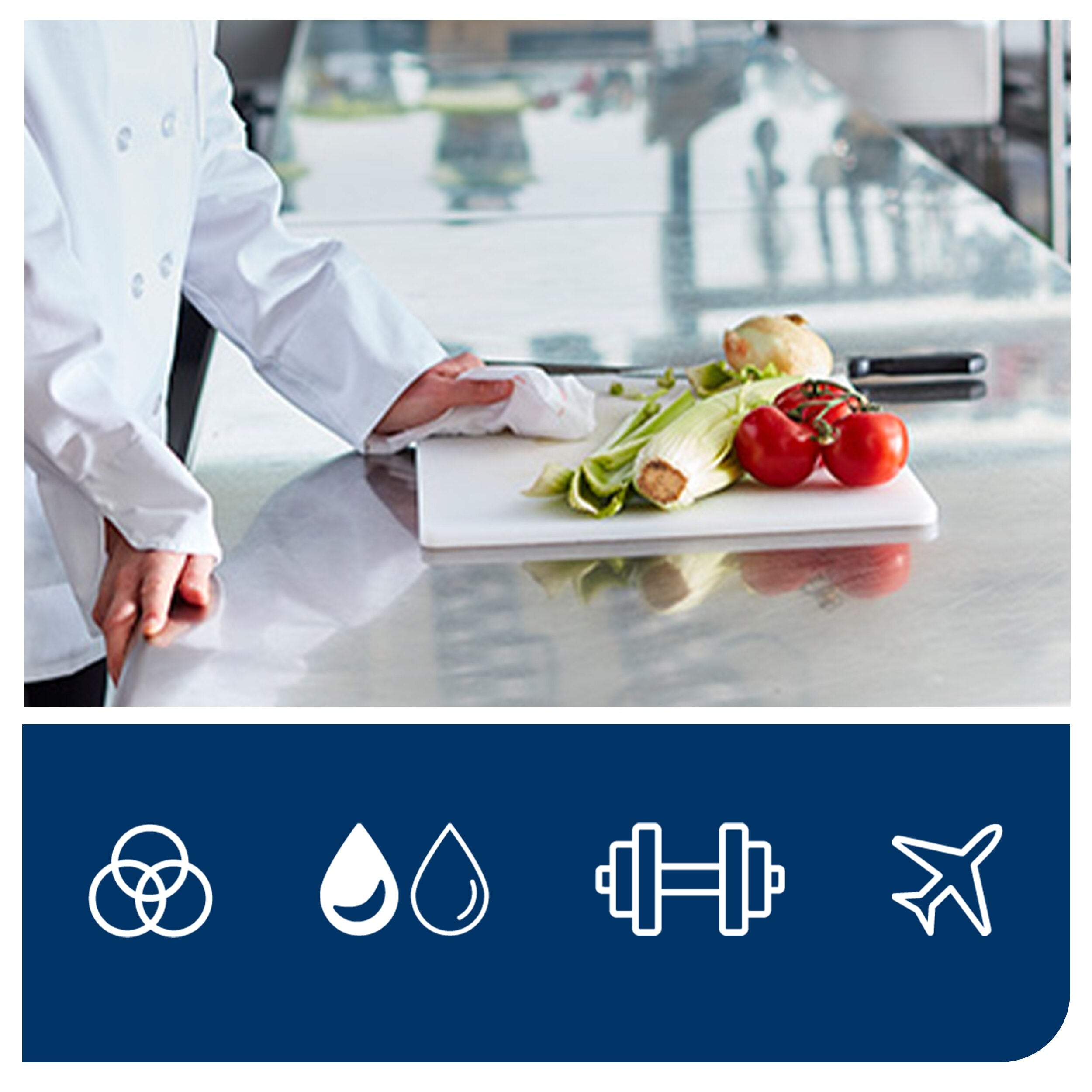 Les espaces de travail sont souvent saturés de rouleaux de papier et de torchons de location. Grâce à notre chiffon multi-usages, gagnez du temps et de l'argent en effectuant un large éventail de tâches. Polyvalent, ultra-résistant et ultra-absorbant, il nettoie les solvants, l'huile et la saleté. De plus, la résistance de son matériau protège vos mains de la chaleur et des éclats de métaux pour une sécurité renforcée. La finition exelCLEAN® de nos chiffons garantit un résultat professionnel.