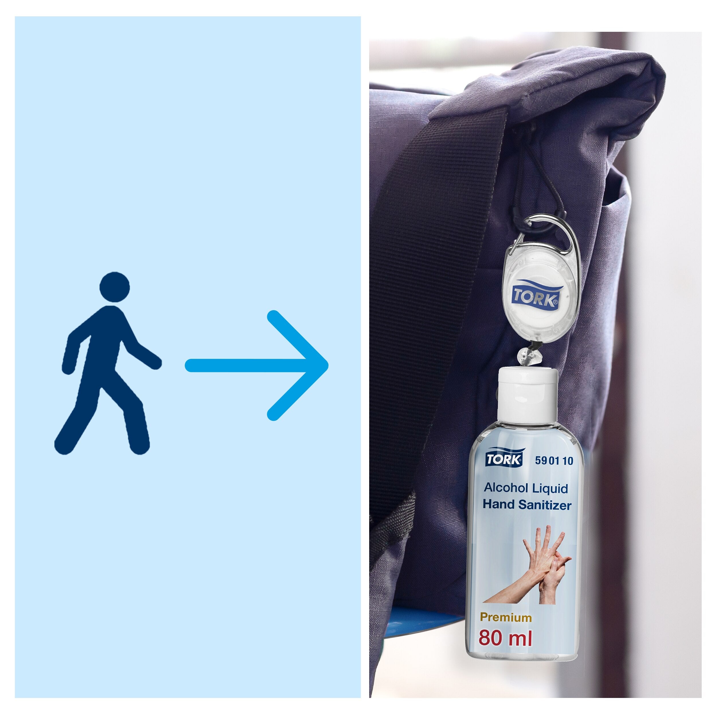 Maintenir une bonne hygiène des mains peut être un défi, surtout si vous vous déplacez sans cesse. Ce clip Tork permet de fixer notre flacon compact de gel désinfectant pour les mains 80 ml à votre tenue, pour une désinfection facile à tout moment. Il limite aussi la contamination croisée entre les mains, le flacon et d'autres surfaces, car le clip est conçu afin que vous n'ayez pas à toucher vos poches quand vous vous désinfectez les mains entre chaque tâche. Il s'utilise avec notre désinfectant pour les mains afin de garder vos mains propres de façon efficace.