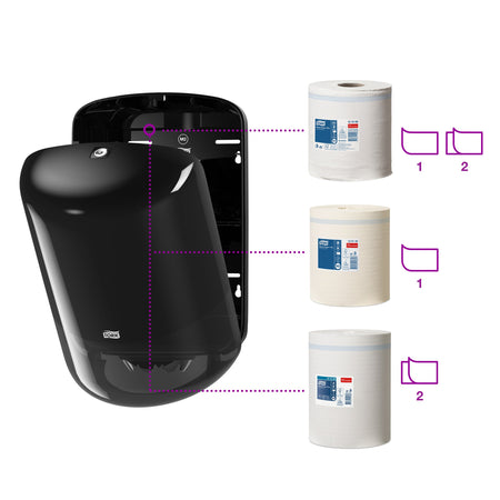 Tork Distributeur de papier d'essuyage à Dévidage Central noir M2 :