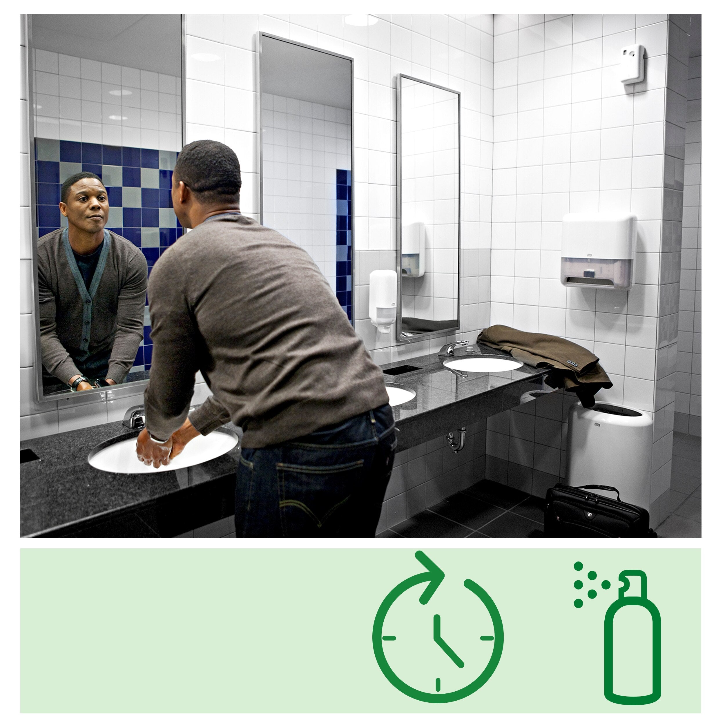 Simplifiez la gestion des odeurs dans les toilettes avec notre Distributeur Tork pour Aérosol Désodorisant. Sa programmation simple garantit un parfum frais 24 h/24. Pratique : l'indicateur de rechargement signale que l'aérosol désodorisant automatique doit être rechargé. Les rechargements rapides et les piles longue durée de l'aérosol désodorisant à fixation murale font gagner du temps. Utilisez-le avec une variété de consommables parfumés afin d'agrémenter l'atmosphère de vos sanitaires.