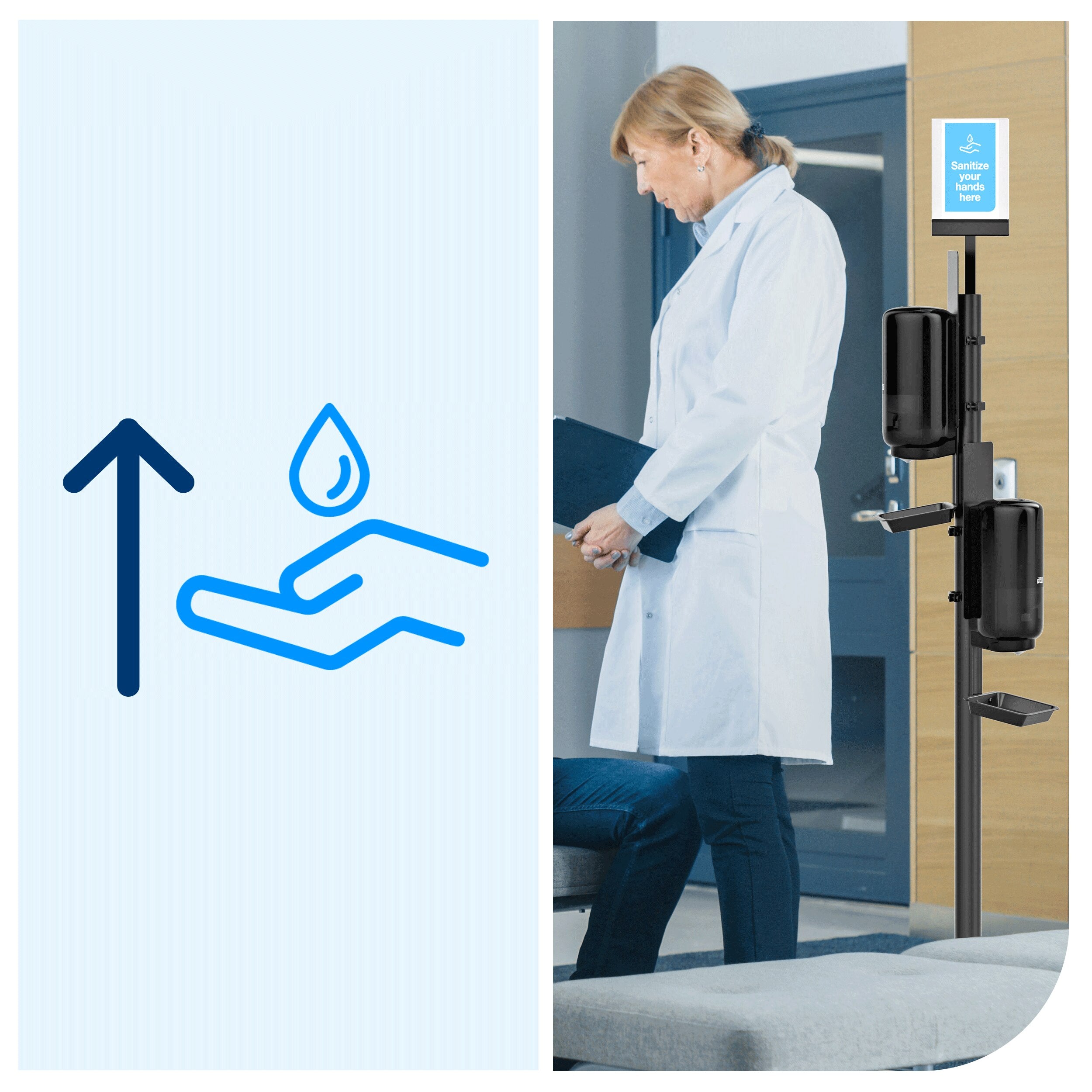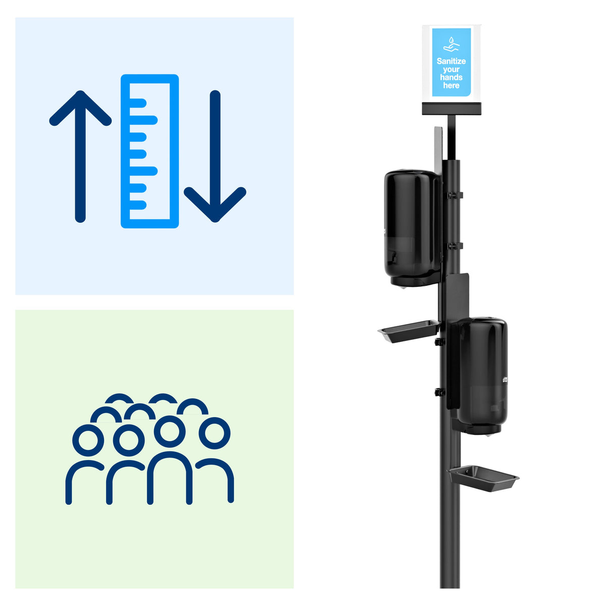 + Hauteur de fixation flexible pour un accès facilité au désinfectant