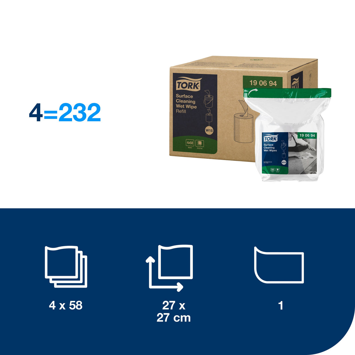 Tork Lingettes imprégnées pour nettoyage des surfaces W15 :