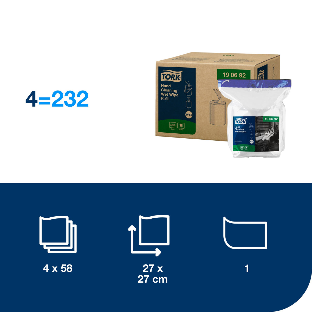 Tork Lingettes humides pour Nettoyage des mains blanches W14 :
