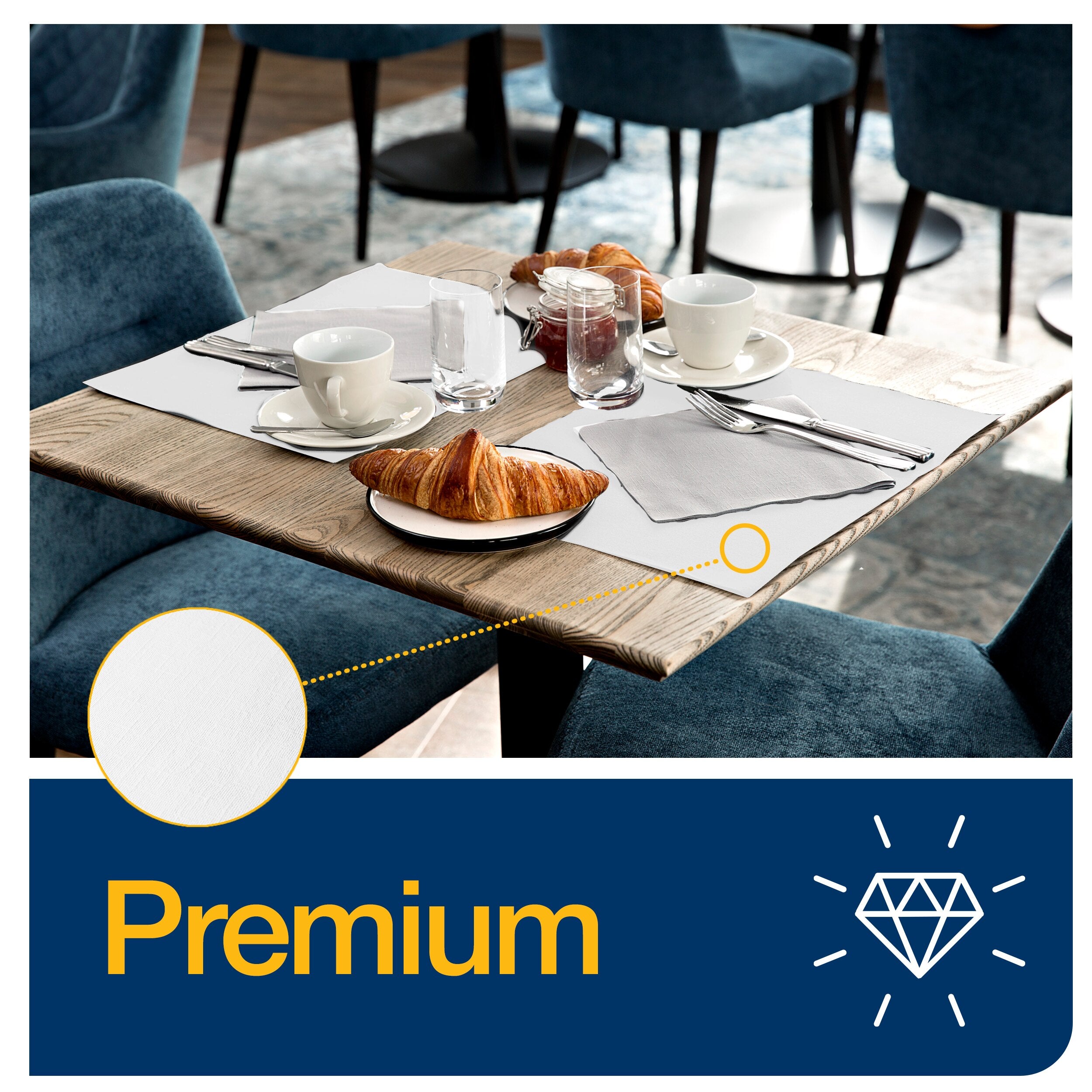 Grâce à ce Set de Table Tork LinStyle®, vos tables de restaurant rivaliseront d'élégance. Doté d'un aspect textile, ce modèle haut de gamme à usage unique impressionnera vos clients. Contrairement aux produits en tissu, il ne nécessite pas de service de blanchisserie, économisant temps et efforts tout en améliorant l'hygiène. Malgré les accidents inévitables, vos tables resteront propres et protégées grâce au film protecteur de ce modèle étanche. Ces sets de table jetables sont fournis sur un plateau pratique qui facilite leur rangement.