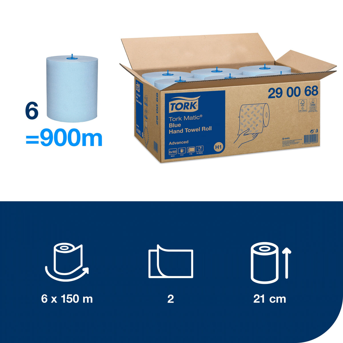 Utilisez notre rouleau d'essuie-mains bleu hygiénique et fiable dans les zones de préparation alimentaire. Ces essuie-mains sont particulièrement visibles grâce à leur couleur, ce qui les rend parfaits pour l'industrie agro-alimentaire où la traçabilité est essentielle. Ils sont également sûrs et certifiés pour le contact alimentaire à court terme. Ces essuie-mains en papier feront bonne impression sur vos employés comme sur vos clients grâce à leur motif feuilles Tork attrayant et leurs bordures gaufrées.