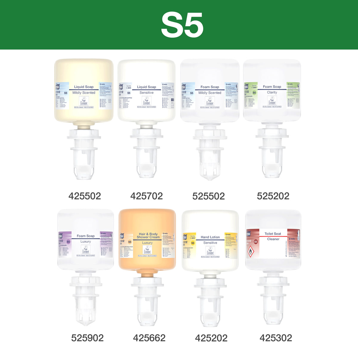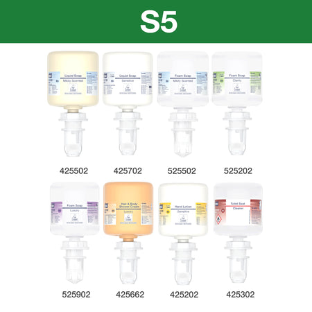 + Large gamme de recharges de savon et désinfectant pour les mains, crème de douche, nettoyant pour siège de toilette et lotion