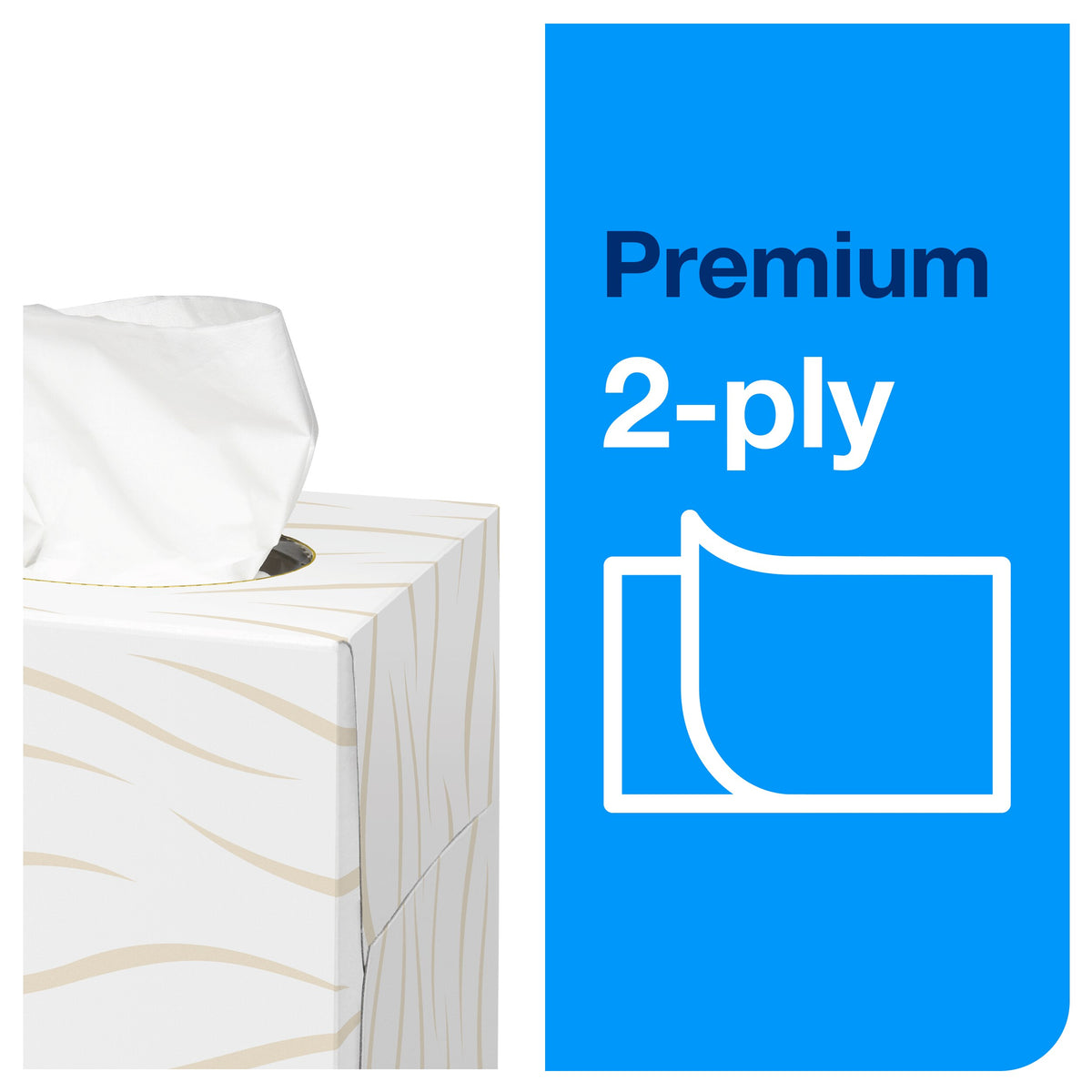 Offrez à vos clients tout le soin qu'ils méritent. Nos mouchoirs en papier premium sont si doux, blancs et absorbants que vos clients se sentiront comme chez eux. Ces mouchoirs à usage unique 2 plis sont bien rangés dans une boîte moderne en forme de cube, qui se place où vous en avez besoin. Grâce à la distribution feuille-à-feuille, les clients ne touchent que le mouchoir qu'ils prennent et votre stock reste hygiénique. Améliorez également vos performances écologiques : les consommables sont certifiés durables.