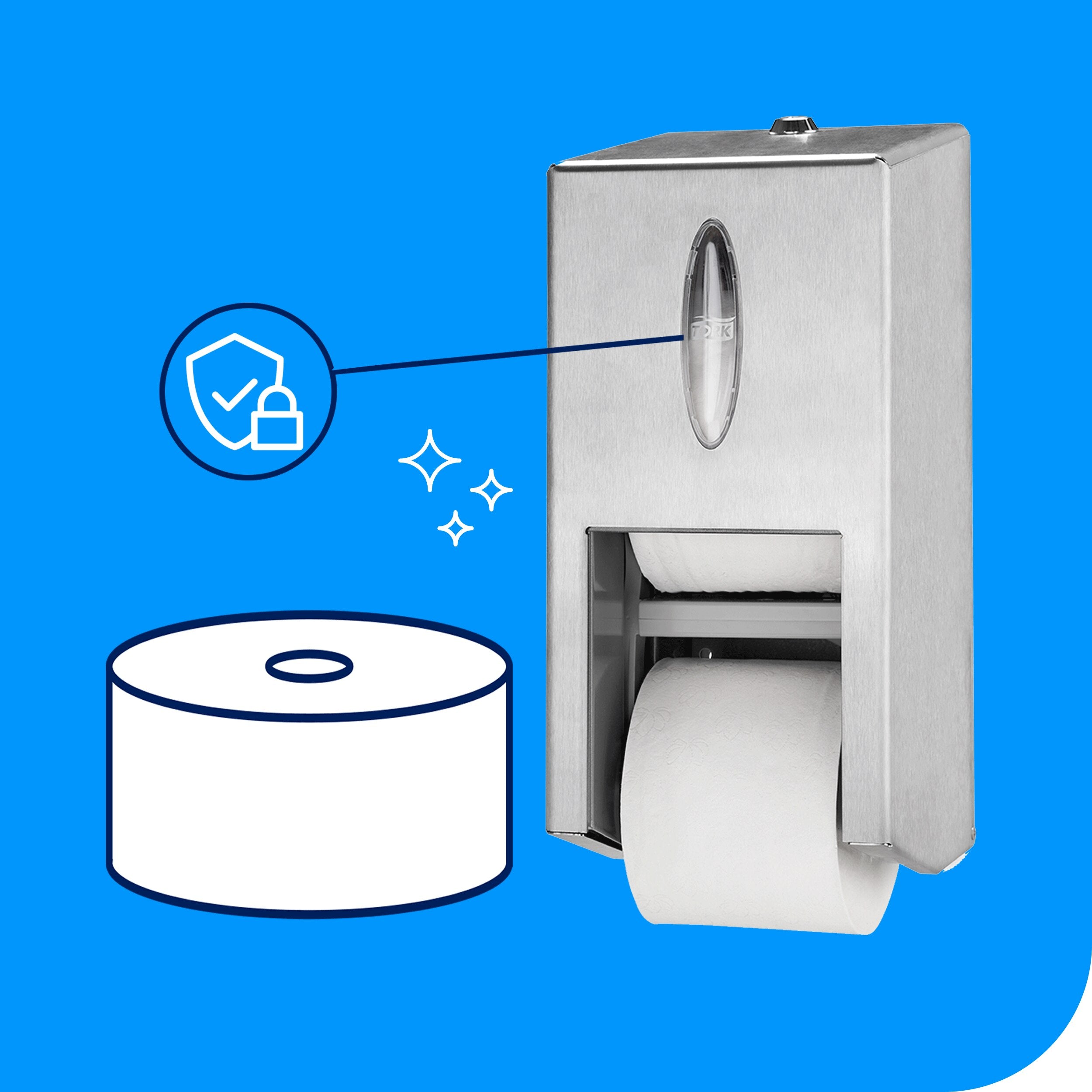 Tork OptiServe® Distributeur pour Papier toilette 2 rouleaux sans mandrin en acier inoxydable T7 :