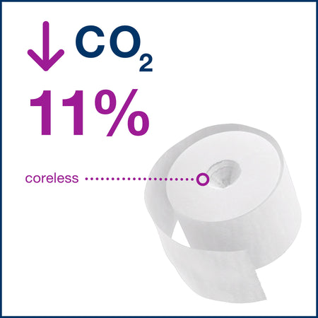 Tork OptiServe® sans mandrin est un système de papier toilette sans mandrin grande capacité destiné aux installations qui mettent l'accent sur l'efficacité, la durabilité et une excellente expérience. Grâce à sa grande capacité, un espace de stockage réduit et une conception certifiée facile d'utilisation, c'est la meilleure alternative au papier hygiénique traditionnel et aux rouleaux de papier toilette jumbo. Ce distributeur fait partie d'une large gamme destinée à répondre à différents besoins en matière de sanitaires, afin que les mêmes consommables compacts puissent être utilisés dans tout l'établissement. Par rapport au papier toilette traditionnel, le papier toilette rouleau sans mandrin Tork OptiServe® contient 3 fois plus de papier. Sans mandrin et sans emballage, il produit moins de déchets.