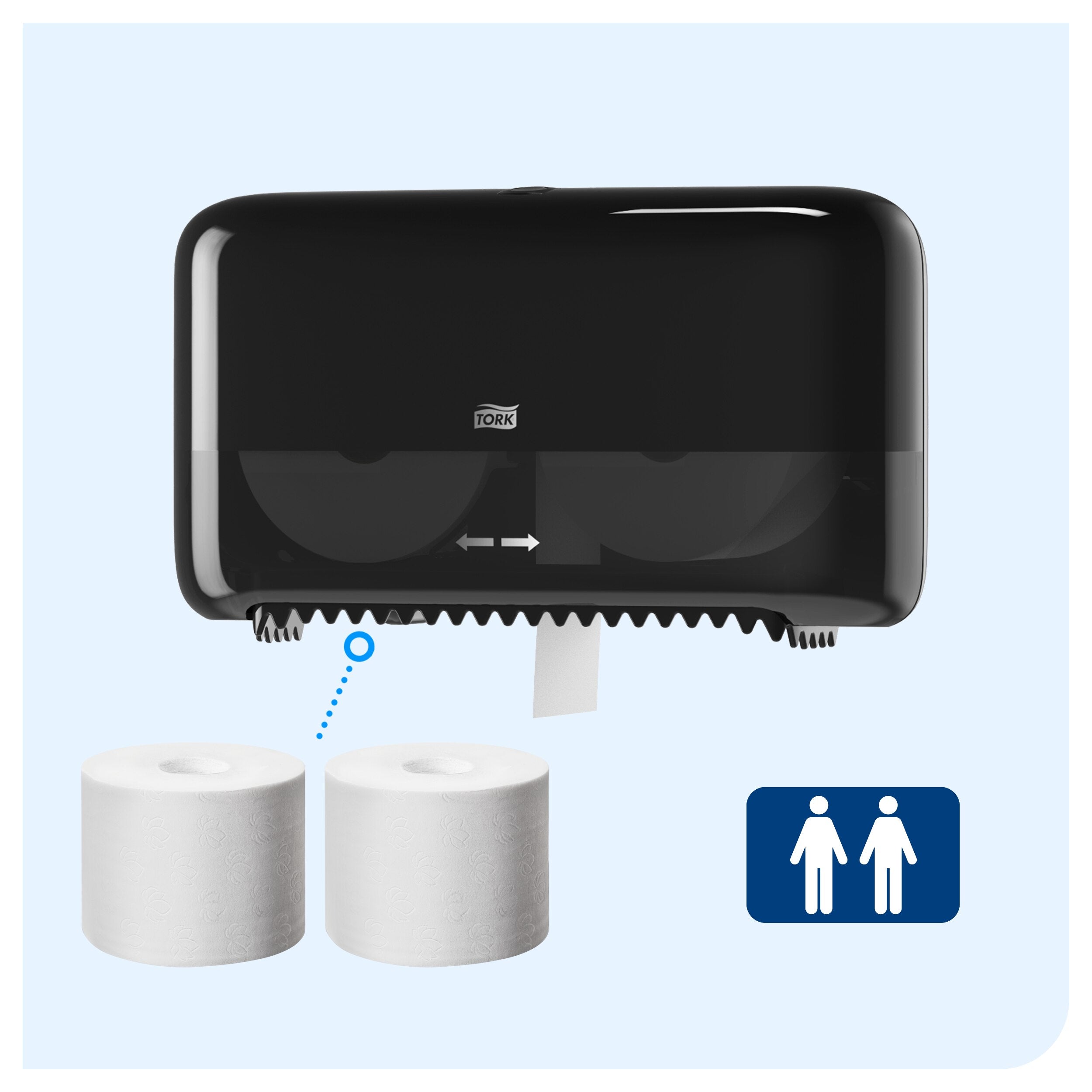 Tork OptiServe® Distributeur pour Papier toilette 2 rouleaux sans mandrin noir T7 :