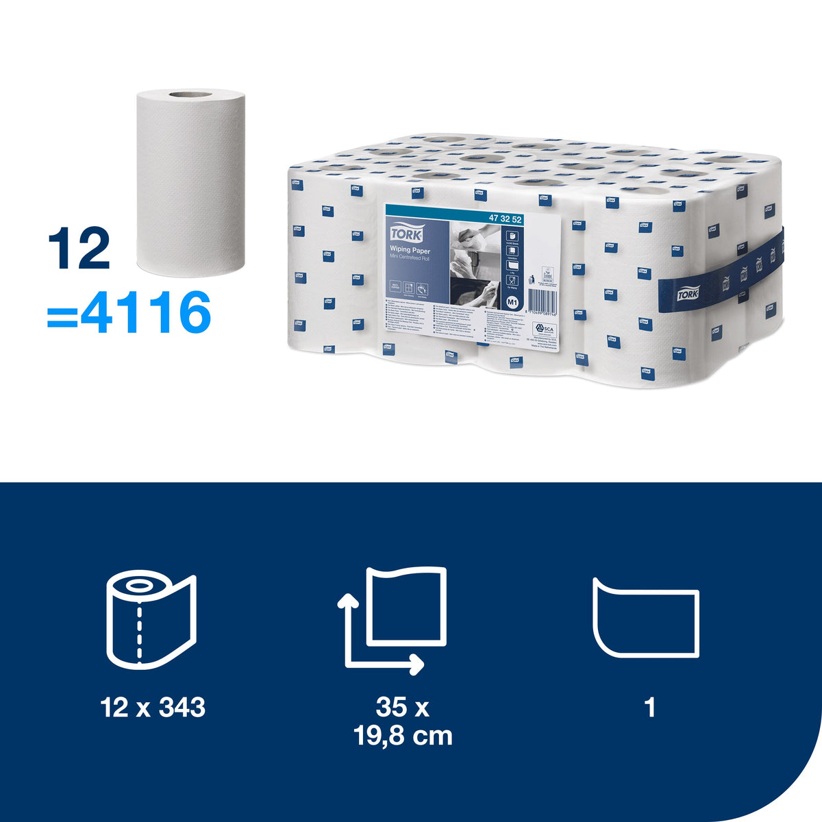 Tork Papier d'Essuyage Blanc M1 :