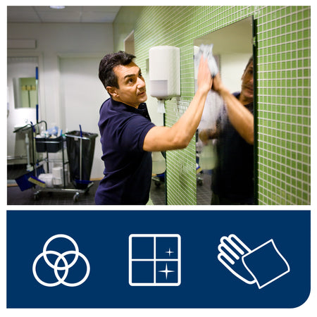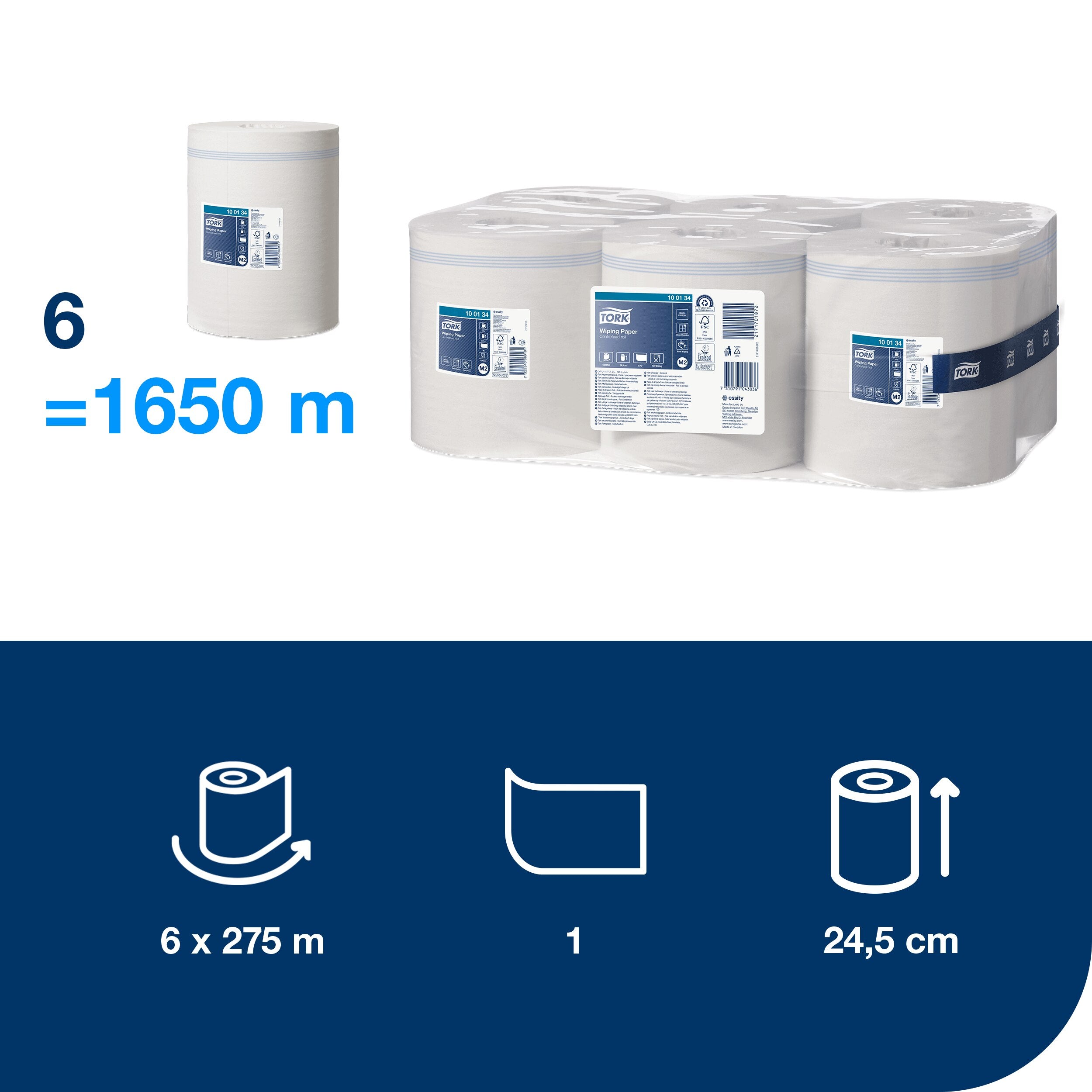Nettoyez facilement les mains et les surfaces avec notre papier d'essuyage multi-usages. Idéal pour le verre et les surfaces ultra-brillantes difficiles, ce papier d'essuyage industriel doux et absorbant ne laisse ni traces, ni peluches. Adapté au Distributeur à Dévidage Central Tork grande capacité utilisable d'une seule main, il améliore l'efficacité du personnel. L'Indicateur de fin de rouleau Tork permet de prévoir les rechargements en évitant d'interrompre le flux de travail.