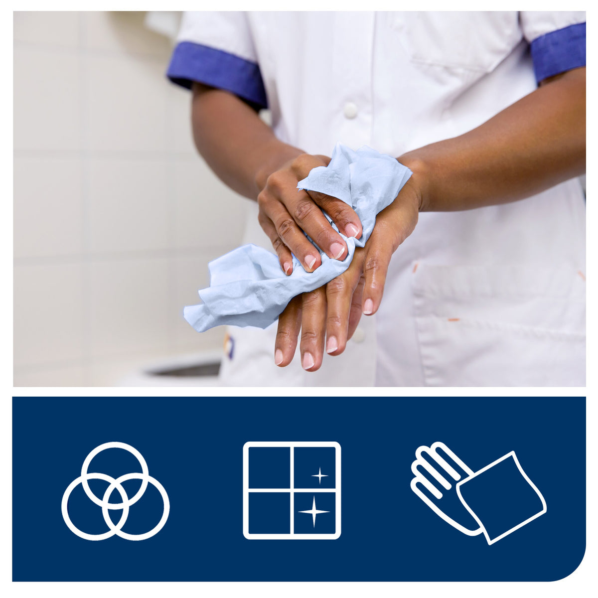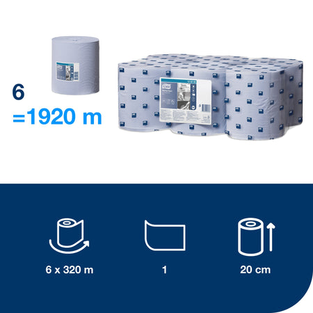 Nettoyez facilement les mains et les surfaces avec notre papier d'essuyage multi-usages. Idéal pour le verre et les surfaces ultra-brillantes difficiles, ce papier d'essuyage industriel doux et absorbant ne laisse ni traces, ni peluches. Adapté au Distributeur à Dévidage Central Tork grande capacité utilisable d'une seule main, il améliore l'efficacité du personnel. L'Indicateur de fin de rouleau Tork permet de prévoir les rechargements en évitant d'interrompre le flux de travail.
