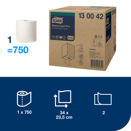 Le Papier d'Essuyage Plus Tork offre une solution efficace pour éponger les liquides et vous sécher les mains. La bobine de papier grande capacité dure plus longtemps, ce qui fait gagner un temps sur les rechargements et les flux de production. Compatible avec de nombreux distributeurs, ce papier d'essuyage industriel 2 plis améliore la productivité. À utiliser avec les Distributeur pour Bobine combi, Dérouleur sur pied ou Distributeur Mural Standard Tork : sûrs et fiables, ils minimisent l'entretien.