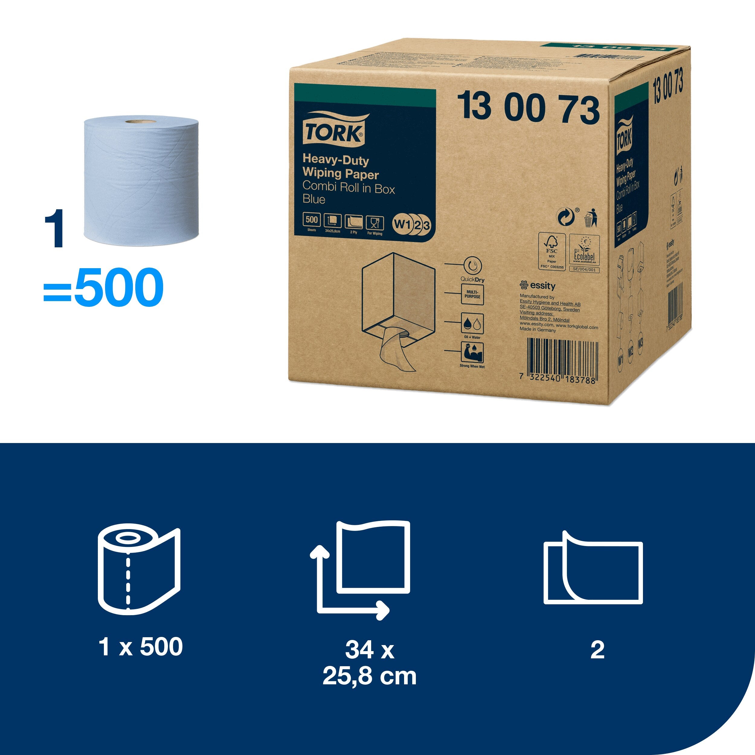 Tork Papier d’Essuyage ultra-résistant bleu W1/2/3 :