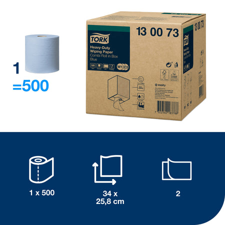 Notre papier d'essuyage industriel ultra-absorbant permet de sécher les mains et nettoyer les liquides efficacement. Grâce à sa grande capacité, cette bobine multi-usages 2 plis réduit le temps passé en rechargements, libérant ainsi du temps pour d'autres tâches. Ce papier d'essuyage bleu s'utilise avec le Maxi Distributeur à Dévidage Central Tork, utilisable d'une seule main et avec le Dérouleur sur pied ou le Distributeur Mural Standard Tork, sûrs et fiables, permettant un meilleur rendement.