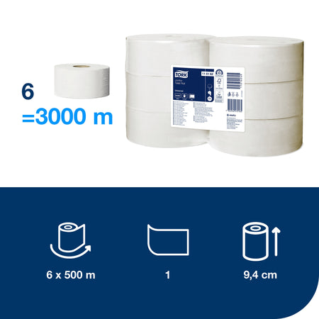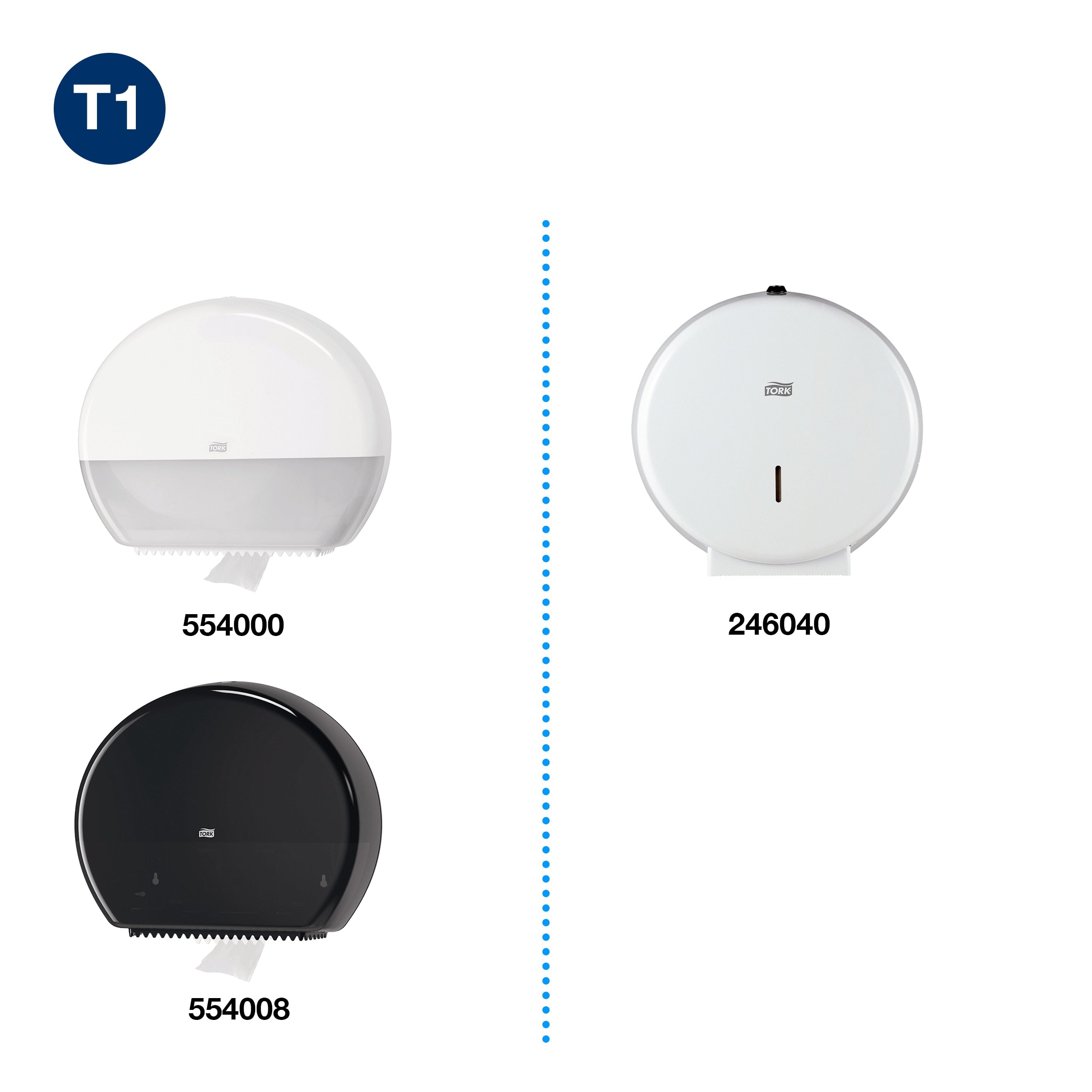Améliorer l'efficacité de vos sanitaires, rien de plus facile avec le système Jumbo de Tork. Notre rouleau de papier toilette satisfait les besoins des sanitaires à fort trafic. Avec plus de papier que les rouleaux ordinaires, il réduit le risque de rupture de stock et fait gagner du temps sur les rechargements. Il s'utilise avec nos distributeurs fermés Tork T1, qui protègent les rouleaux pour améliorer l'hygiène. Nos consommables papier toilette sont aussi écolabélisés pour un meilleur respect de l'environnement.