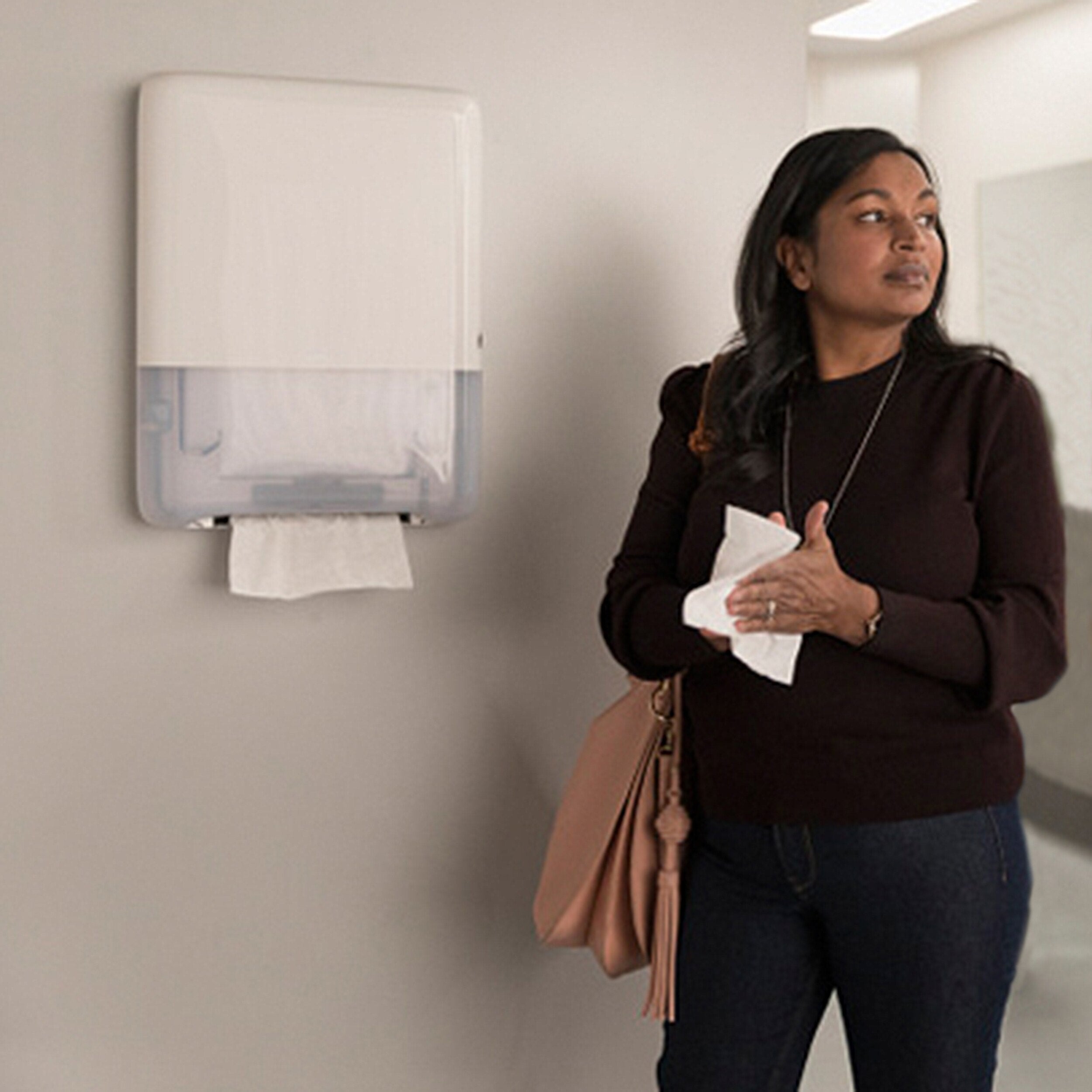 Entre les ruptures d'essuie-mains et les rechargements fréquents, l'entretien des sanitaires à forte circulation peut s'avérer difficile, ce qui se répercute sur le temps d'attente des utilisateurs. Ce distributeur grande capacité propose un essuie-mains en 3 secondes, et peut contenir jusqu'à 1 230 essuie-mains. Il divise par deux le temps de rechargement et élimine les bourrages grâce à notre système breveté Continu™, et ce dans un format ultra-mince et conforme ADA. Ce système, certifié facile à utiliser par l'Association suédoise de rhumatisme (ASR), rend l'hygiène accessible à tous.