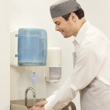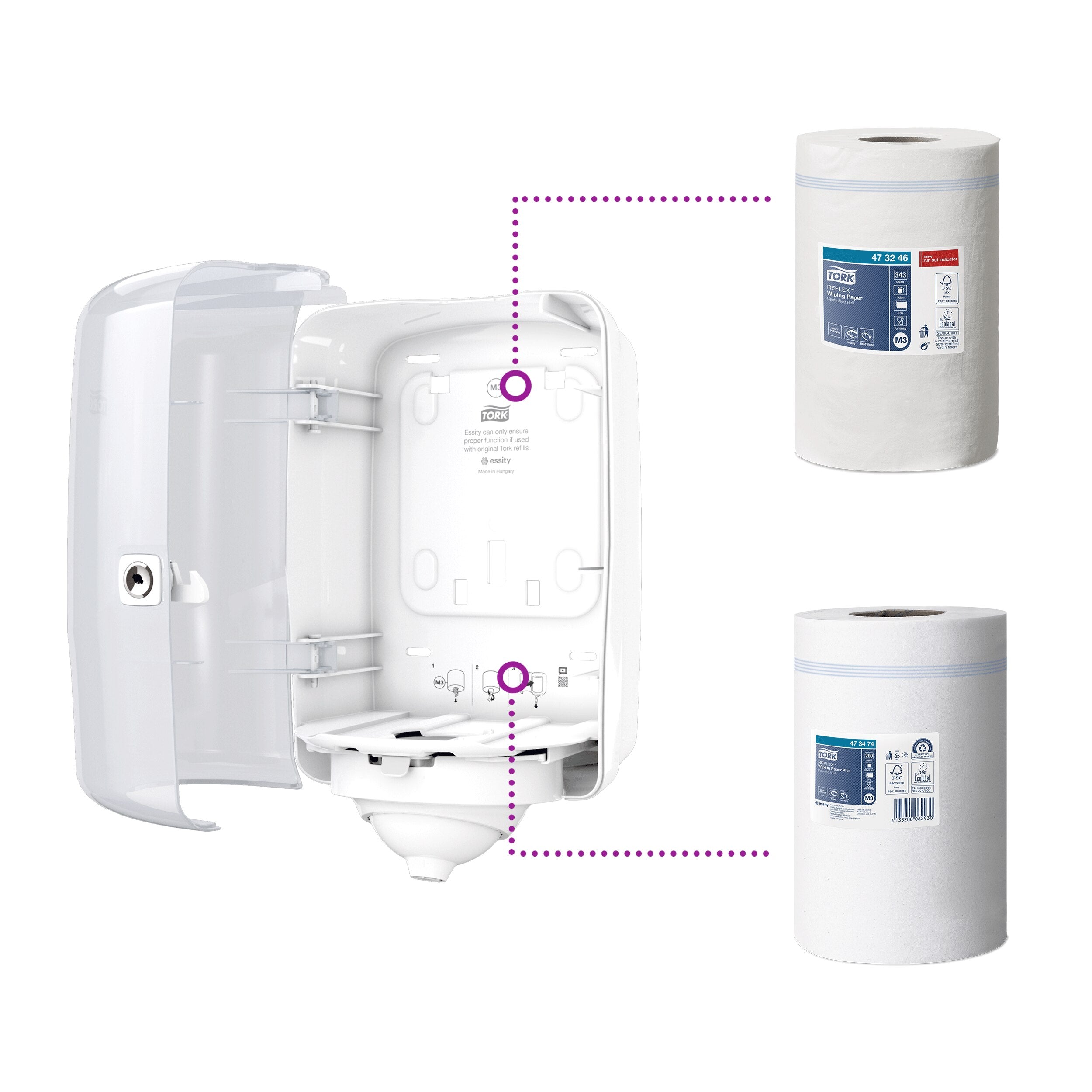 Les lieux de travail dynamiques exigent des produits durables. Notre Distributeur à Dévidage Central Tork Reflex™ est assez robuste pour une utilisation quotidienne intensive, et est une solution parfaite pour l'essuyage des mains et des surfaces. Compact, il est doté d'un embout rotatif qui convient aux espaces professionnels de toute taille. Les déchets sont réduits, grâce à la distribution feuille-à-feuille qui réduit la consommation jusqu'à 37 % par rapport au système traditionnel à Dévidage Central Tork®. Notre indicateur de fin de rouleau, qui permet de planifier les rechargements, favorise l'efficacité.