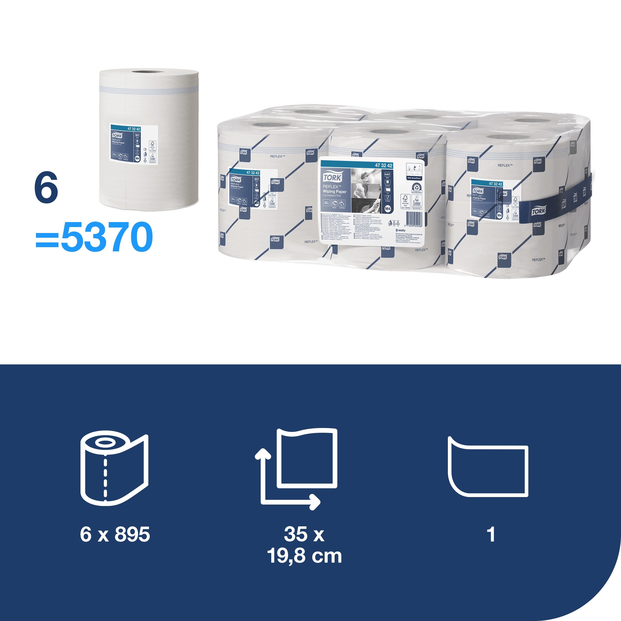 Tork Reflex™ Papier d'Essuyage blanc M4 :