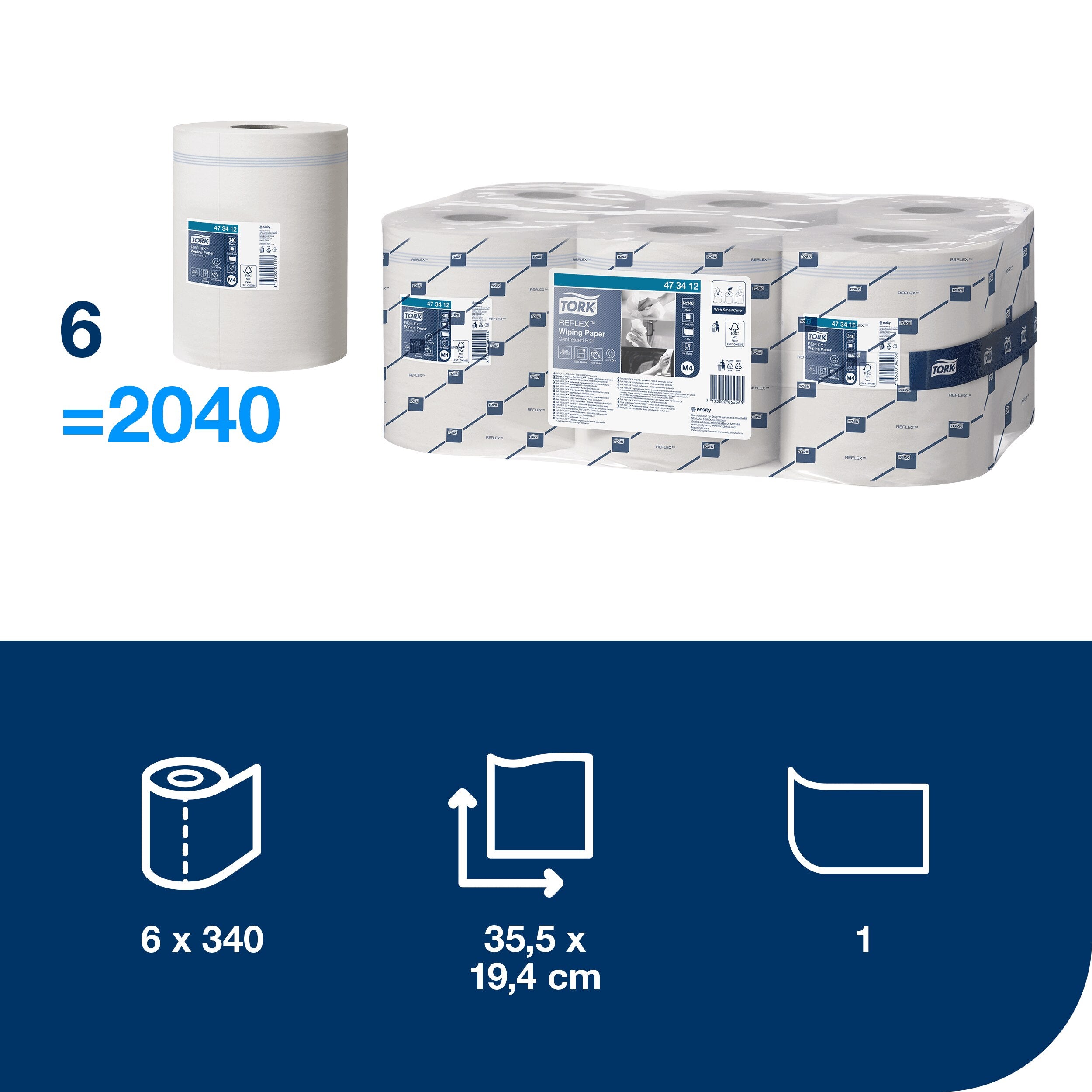 Notre Papier d'Essuyage Reflex™ multi-usages, solide et absorbant sèche les surfaces et les mains. Le mandrin SmartCore® facilite le rechargement, tandis que l'indicateur de fin de rouleau anticipe les besoins de consommables. Cette bobine de papier industriel s'adapte au Distributeur à Dévidage Central Reflex™ feuille à feuille qui minimise les risques de contamination croisée. Ce papier d'essuyage réduit la consommation jusqu'à 37 % par rapport au Papier d'Essuyage Plus Tork à débit illimité.