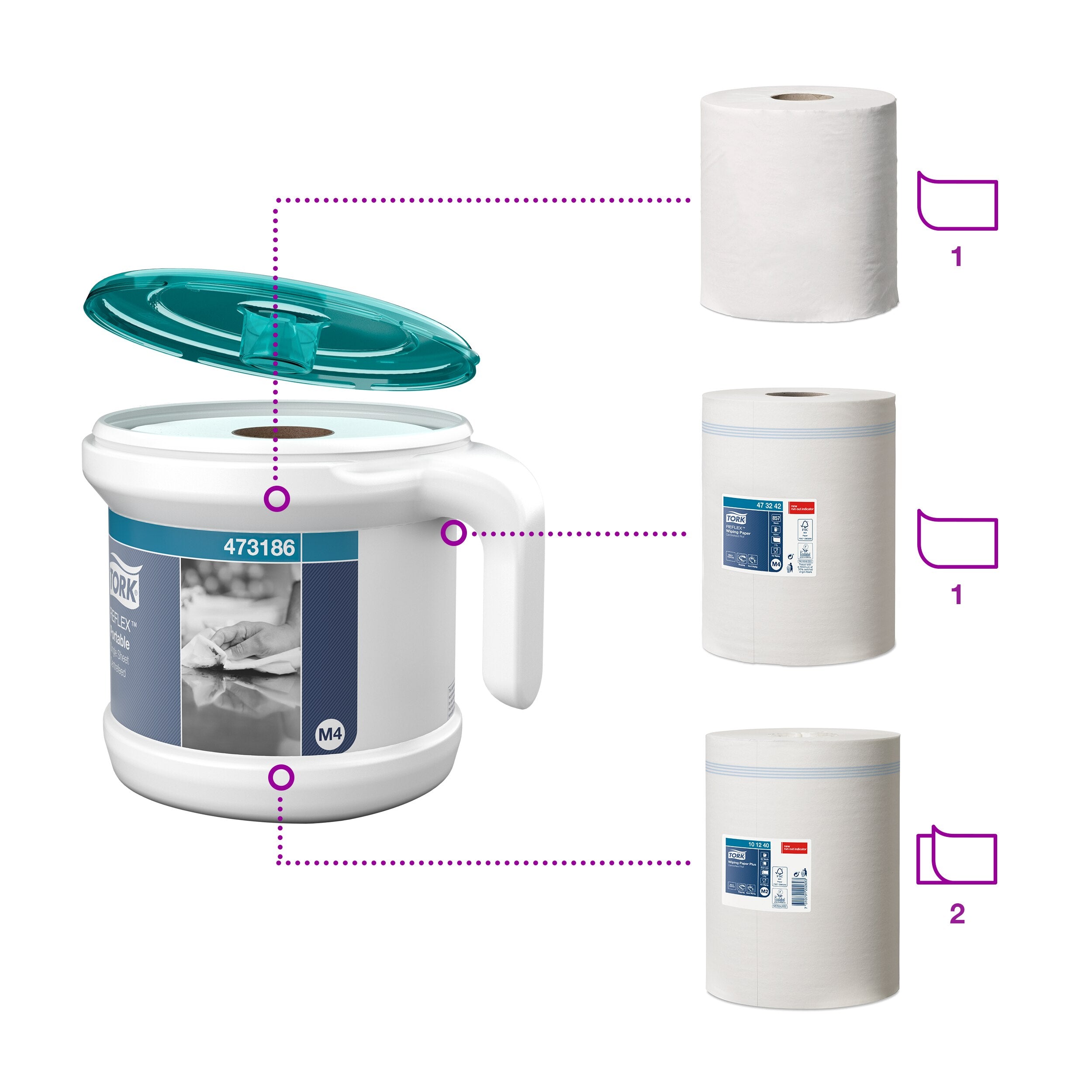 Tork Reflex ™ Starter Pack pour Bobine à Dévidage Central blanc et turquoise M4 :