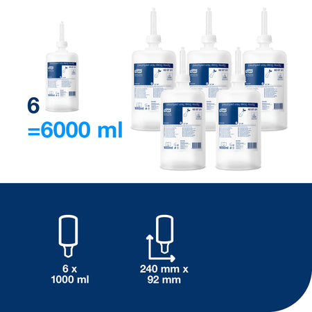 Plus d'efficacité, moins d'efforts. Ce savon en spray Tork sans parfum ni colorant est doux pour la peau. Idéal dans les sanitaires à forte circulation où l'efficacité est essentielle, il fait gagner du temps au personnel grâce au rechargement en moins de 10 secondes (test par un panel interne). Le consommable s'utilise avec les distributeurs de savon liquide et en spray Tork, certifiés faciles à utiliser, qui assurent une bonne hygiène des mains aux utilisateurs.