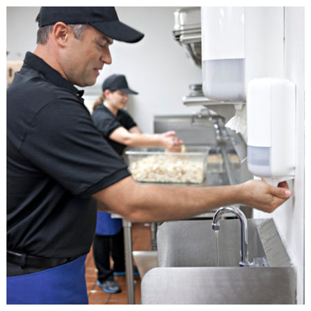 Parfait pour le secteur alimentaire, le Savon liquide antimicrobien Tork à base d'acide lactique est intraitable avec les micro-organismes problématiques, tout en restant doux pour les mains. Il est 100 % biodégradable et son principe actif est 100 % végétal, ce qui en fait un choix respectueux de l'environnement. Il est compatible avec le Distributeur de Soins pour la peau Tork S4.