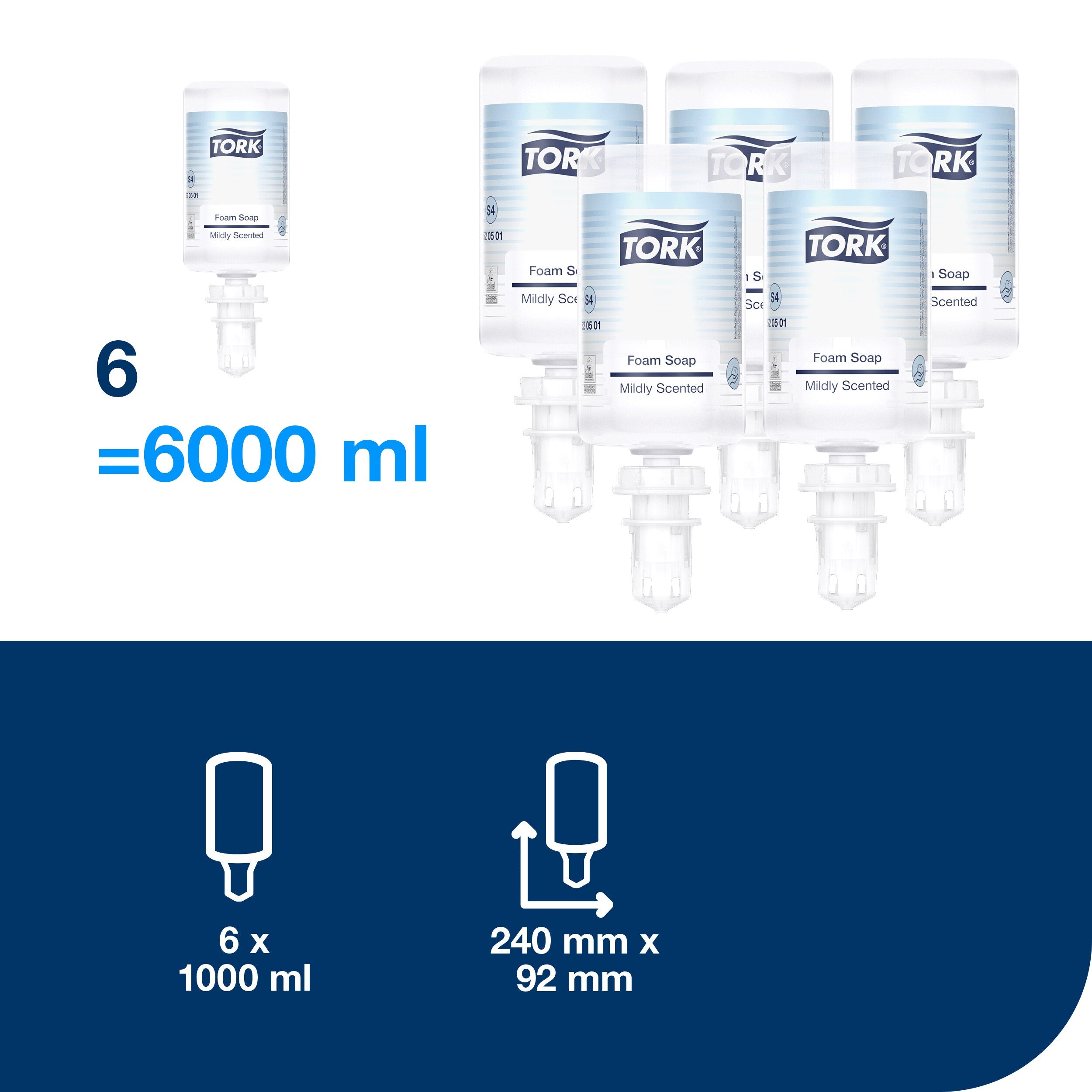 Prenez soin des peaux normales et sèches lors du lavage quotidien des mains. Le savon mousse doux Tork au parfum frais est hydratant et réparateur. Sa mousse crémeuse assure un lavage des mains en douceur. Faites gagner du temps au personnel grâce au rechargement sans effort en moins de 10 secondes (temps de rechargement testé par un panel interne). Le consommable s'utilise avec le distributeur de savon Tork S4, facile à utiliser et offrant une bonne hygiène des mains.