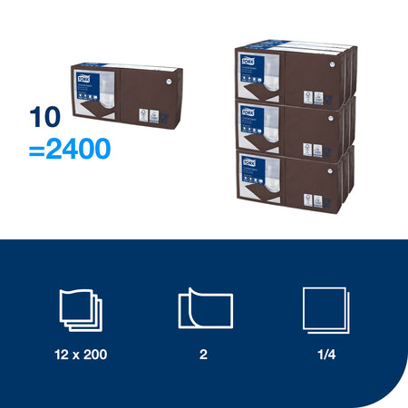 La première impression est essentielle pour les bars et les cafés. Vos clients prendront du plaisir à déguster vos en-cas et boissons grâce à nos Serviettes Cocktail Tork de qualité supérieure. Ce modèle à 2 plis dure tout au long de leur expérience au sein de votre établissement et garantit leur satisfaction. Ces serviettes à usage unique se jettent après chaque passage pour une hygiène irréprochable. Vos tables resteront élégantes grâce à notre éventail de coloris, classiques et contemporains.