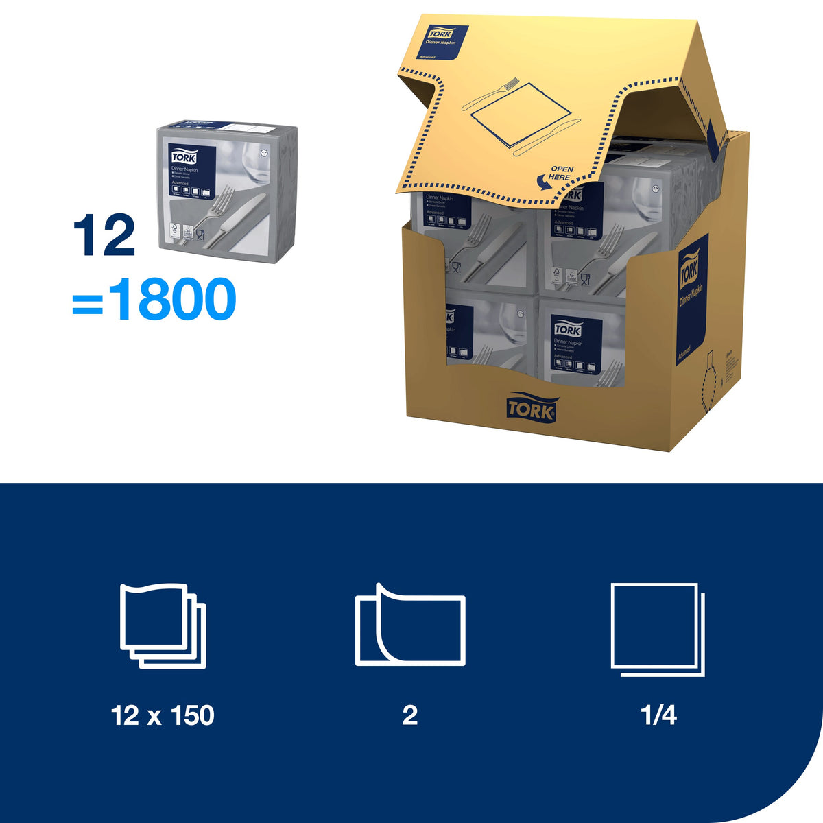 Nos Serviettes Dinner Tork sont pensées pour les restaurants décontractés alliant élégance et praticité. Leur grand format offre à vos clients une expérience plus conviviale. Ces serviettes dîner sont aussi appréciées par le personnel : leur conception à usage unique évite l'étape fastidieuse et coûteuse du lavage. Elles aident également à améliorer l'hygiène en se jetant après utilisation. Nos serviettes dîner se déclinent dans des couleurs classiques et modernes pour compléter votre décoration.