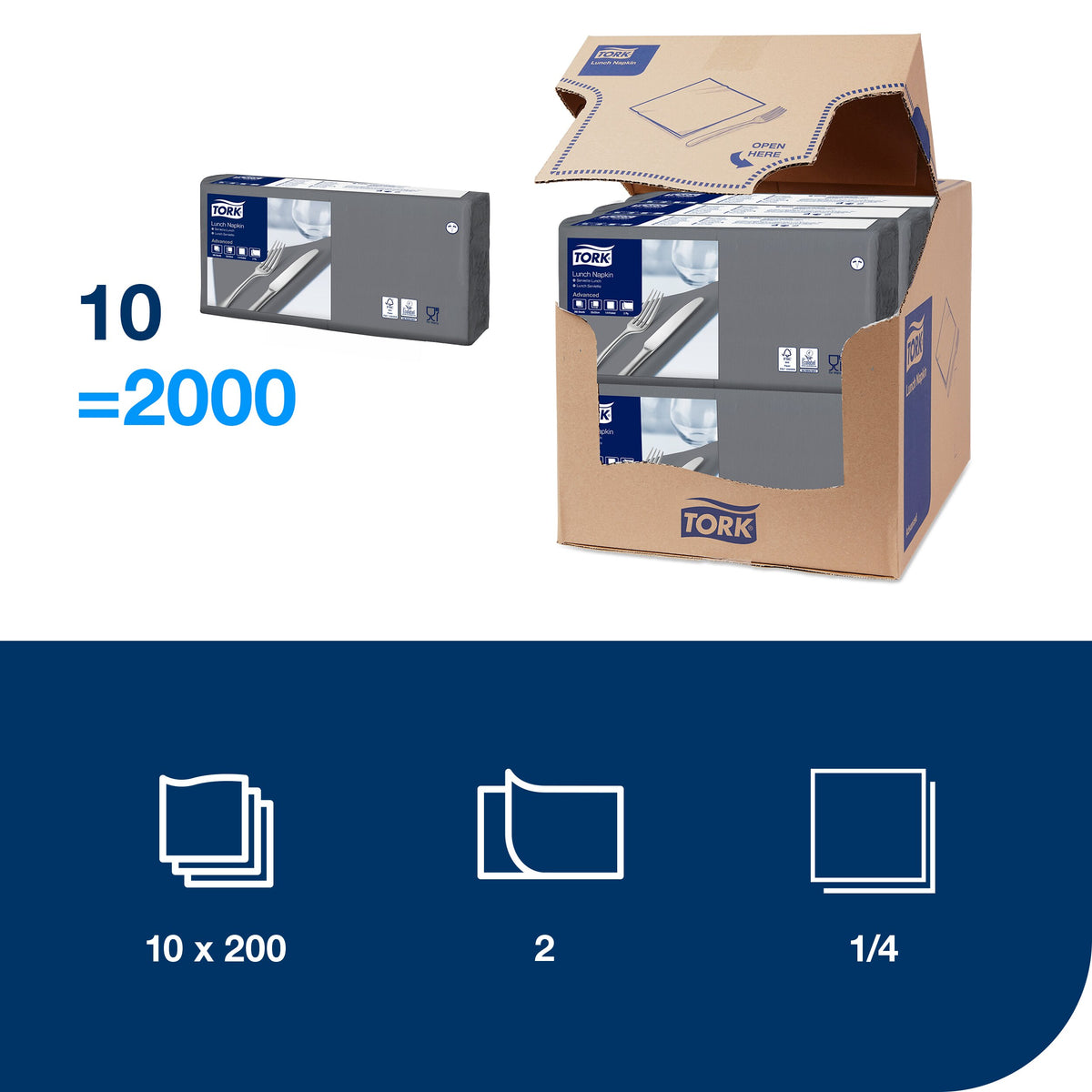 Atteignez vos exigences de performance sans dépasser votre budget avec nos Serviettes Lunch Tork 2 plis. Leur format adapté aux déjeuners est idéal pour les lieux qui servent des repas légers ou des en-cas. L'épaisseur de ces serviettes de table les rend assez absorbantes pour éponger rapidement les éclaboussures liées à la nourriture et aux boissons. Une large palette de couleurs modernes et classiques vous permet de choisir une serviette en papier qui correspond à la décoration de votre restaurant.