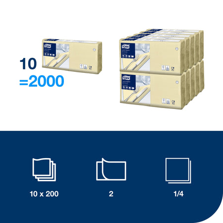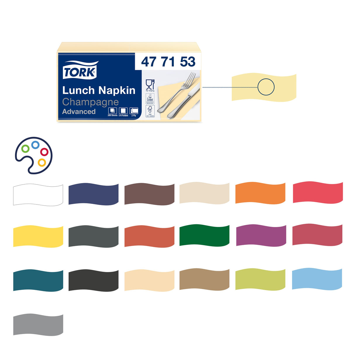 Atteignez vos exigences de performance sans dépasser votre budget avec nos Serviettes Lunch Tork 2 plis. Leur format adapté aux déjeuners est idéal pour les lieux qui servent des repas légers ou des en-cas. L'épaisseur de ces serviettes de table les rend assez absorbantes pour éponger rapidement les éclaboussures liées à la nourriture et aux boissons. Une large palette de couleurs modernes et classiques vous permet de choisir une serviette en papier qui correspond à la décoration de votre restaurant.