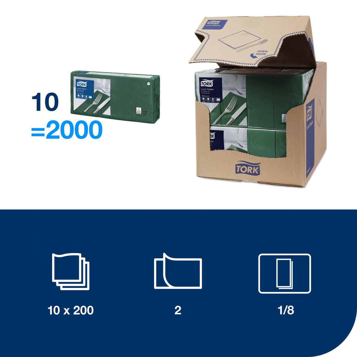 Gagnez un temps précieux lors des services de repas légers ou d'en-cas avec nos Serviettes Lunch Tork pré-pliées. Le format adapté aux déjeuners permet de répondre à vos exigences de coûts sans compromettre les performances. De plus, la conception 2 plis garantit l'absorption rapide des éclaboussures d'aliments et de boissons afin de garder votre salle propre. Coordonnez facilement nos serviettes de table à votre décoration en choisissant parmi une large gamme de couleurs modernes et classiques.