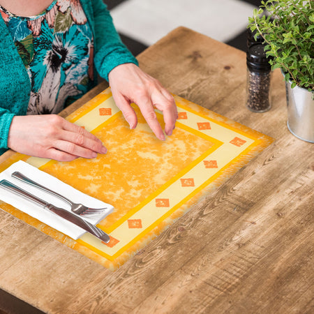 Ajoutez la touche finale à votre décor de saison avec ce Set de table jetable Tork Palazzo orange. Son motif original agrémente la décoration des restaurants à l'ambiance décontractée tout en donnant à la clientèle une impression de propreté immédiate. Les nappes restent nettes et protégées des taches, grâce à ce set de table en papier individuel. Pour plus de commodité et d'hygiène, ces sets de table jetables sont livrés dans un plateau de rangement ultra pratique.