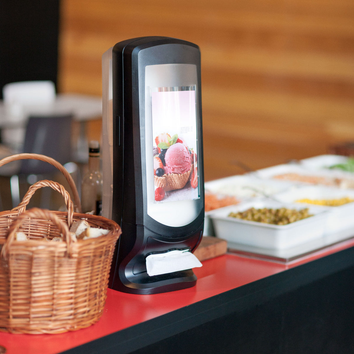 Les serviettes sont souvent gaspillées dans les restaurants très fréquentés, ce qui fait perdre de l'argent mais aussi du temps puisque le personnel doit recharger les distributeurs. La distribution feuille-à-feuille du Distributeur de Serviettes sur pied Tork Xpressnap® réduit la consommation d'au moins 25 % par rapport aux distributeurs de serviettes traditionnels. Ce modèle fermé améliore l'hygiène, puisque les clients ne touchent que les serviettes utilisées. Ce distributeur vertical permet de gagner de l'espace dans les libres-services. Il peut se fixer au mur aisément et rapidement, de façon permanente.