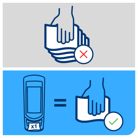 + Distribution feuille-à-feuille qui améliore l'hygiène et réduit la consommation