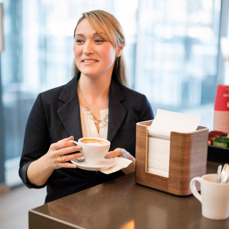 Les restaurants libre-service subissent des coûts et du gaspillage quand trop de serviettes sont utilisées. Réduisez la consommation d'au moins 25 % par rapport aux distributeurs de serviettes en papier classiques avec la distribution feuille à feuille. Ce système aide à créer un espace rangé et à contrôler les coûts. Grâce au distributeur de serviettes intégralement fermé, chacun obtient une serviette propre et l'hygiène est améliorée.