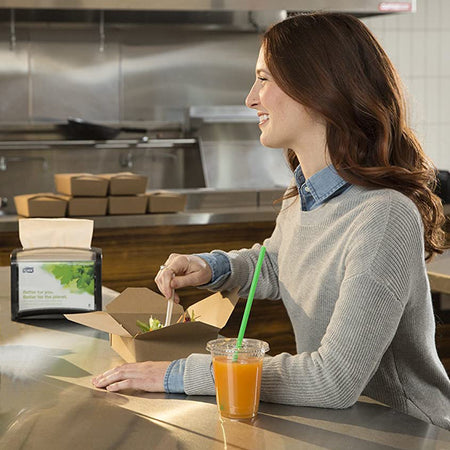 Réduisez la consommation de serviettes en papier pour distributeur dans les zones de libre-service, ainsi que le temps de nettoyage, grâce à Tork Xpressnap® Serviettes Enchevêtrées Extra Douces Naturelles. L'emballage pratique rend les consommables faciles à stocker et garantit des normes d'hygiène élevées. La distribution feuille à feuille réduit la consommation d'au moins 25 % par rapport aux distributeurs de serviettes classiques.