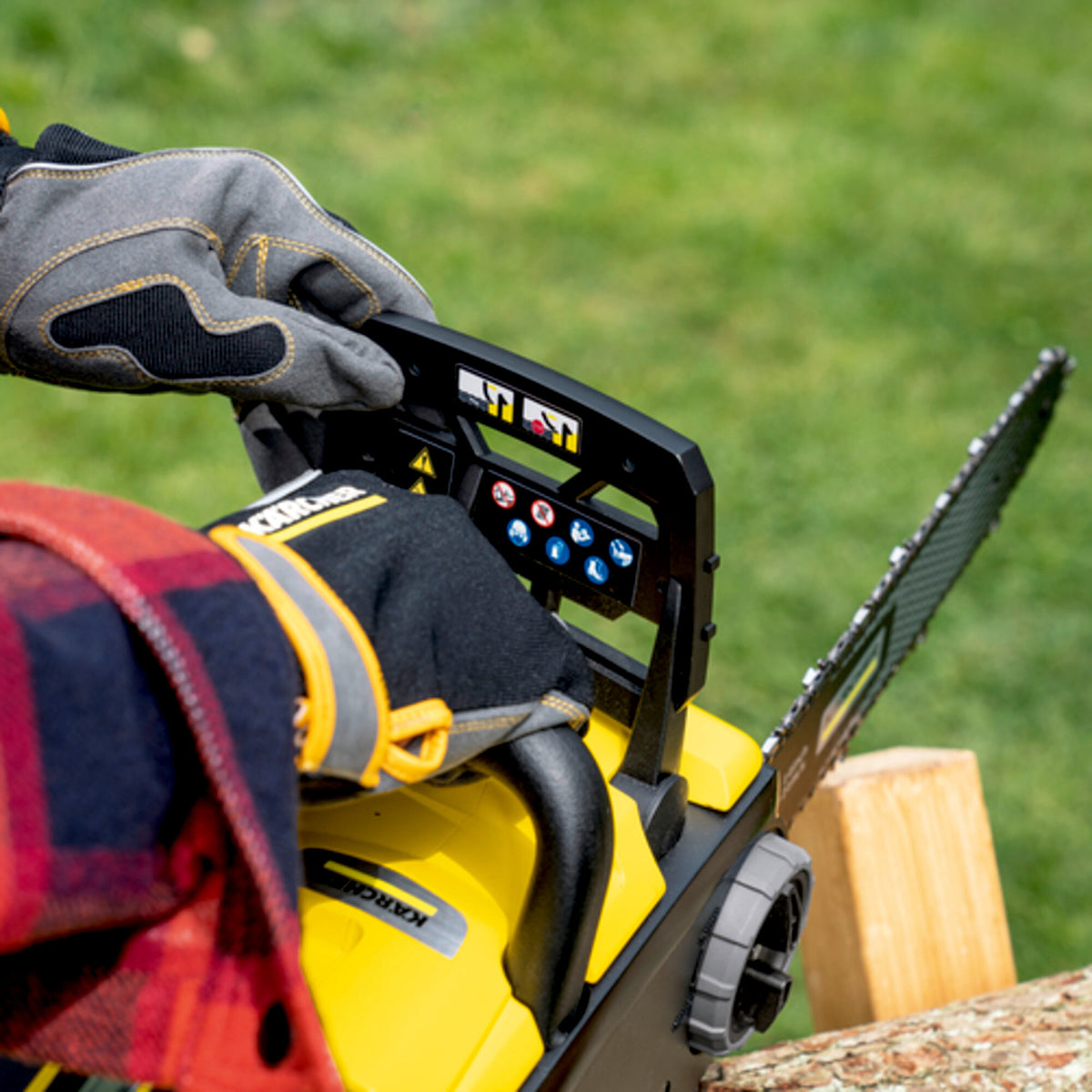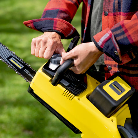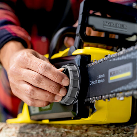 - Pour les travaux d'entretien exigeants : avec une longueur de guide de 35 cm et une vitesse de chaîne de 21 m/s, la tronçonneuse sans fil CNS 36-35 de Kärcher est idéale pour le jardin